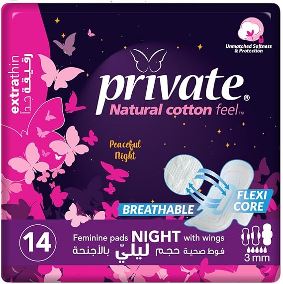 7- Private sanitary pads protects the skin with a soft top layer reducing irritation and increasing a feeling of comfort. It provides softness and flexibility helping a comfortable fit during daily use.