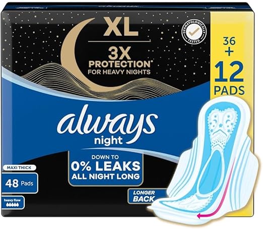 3- Always sanitary pads provides high dryness and comfort even with movement all night long. It enhances comprehensive protection thanks to a longer length and 360-degree coverage.